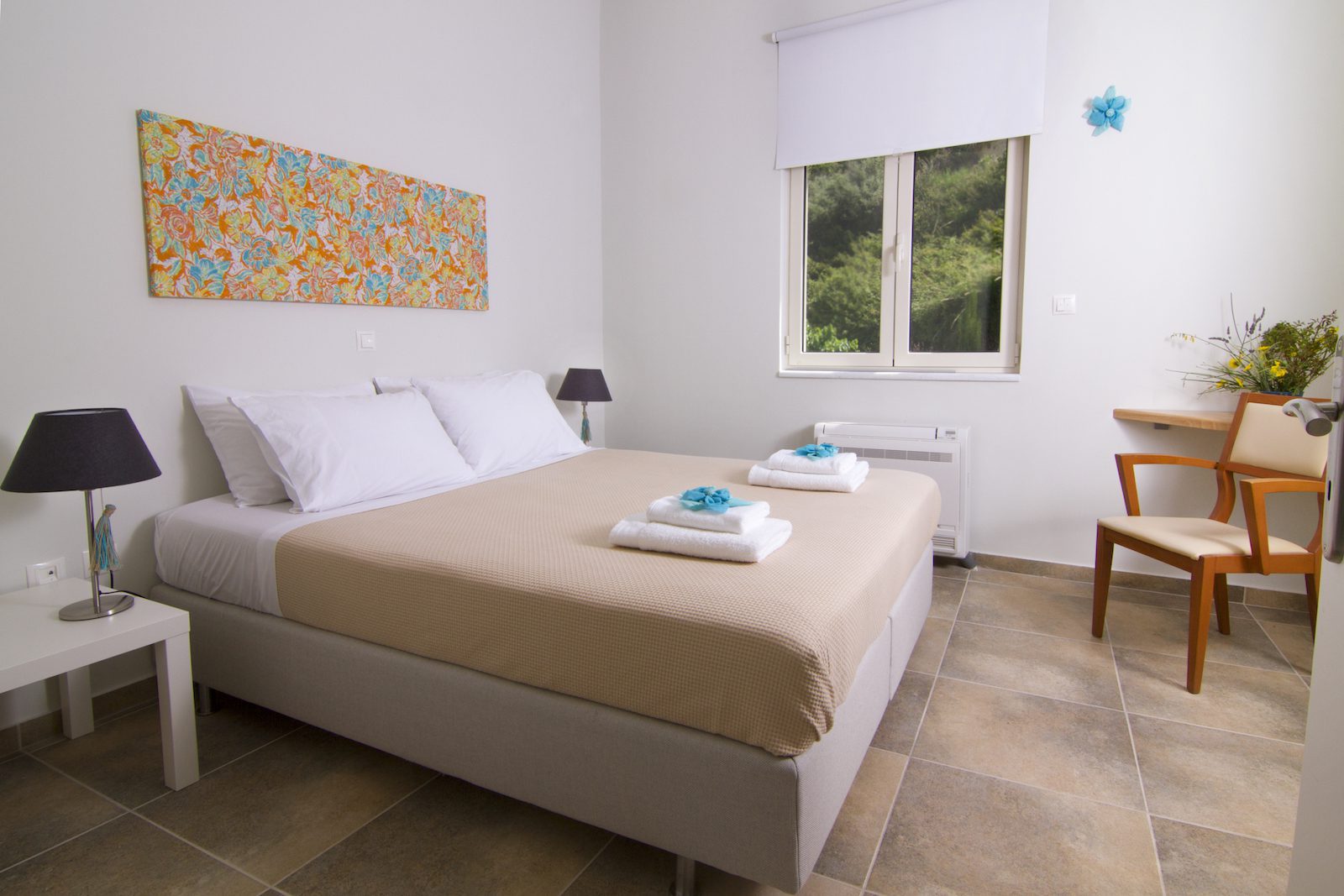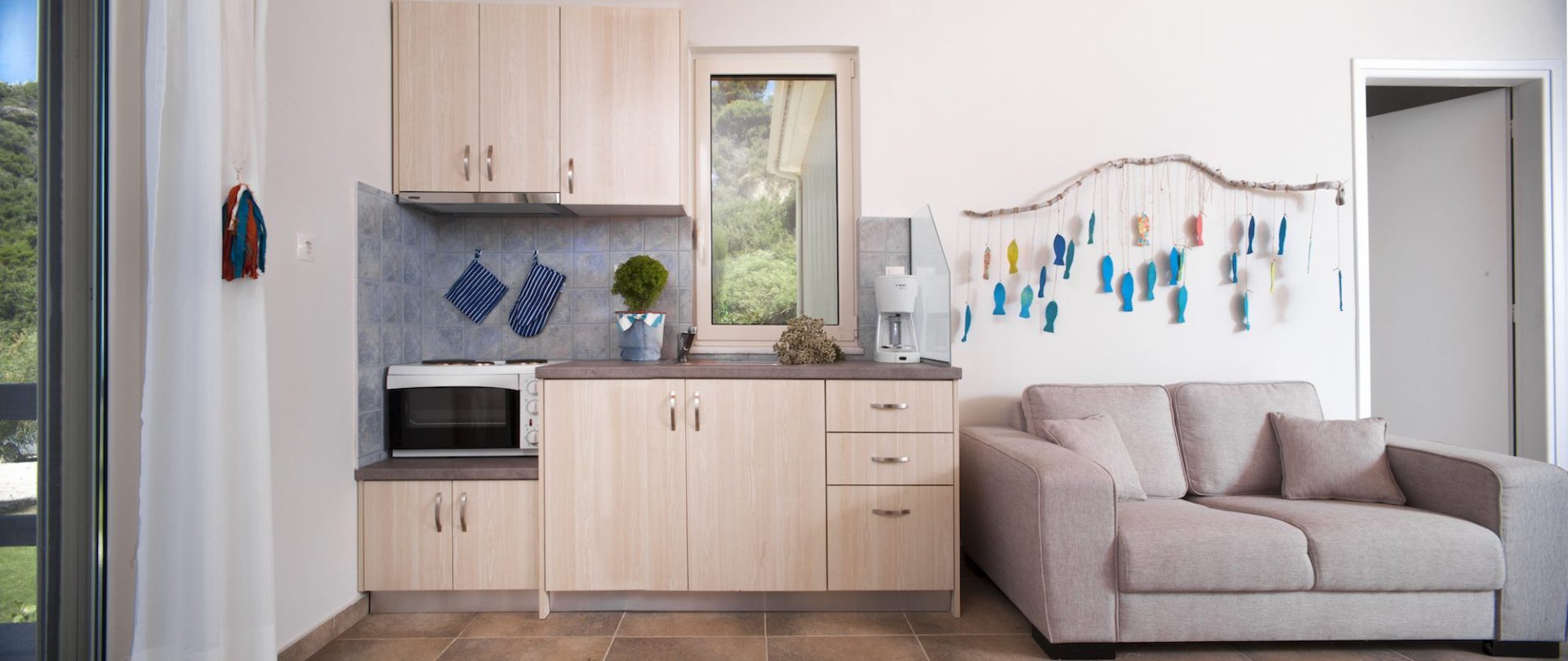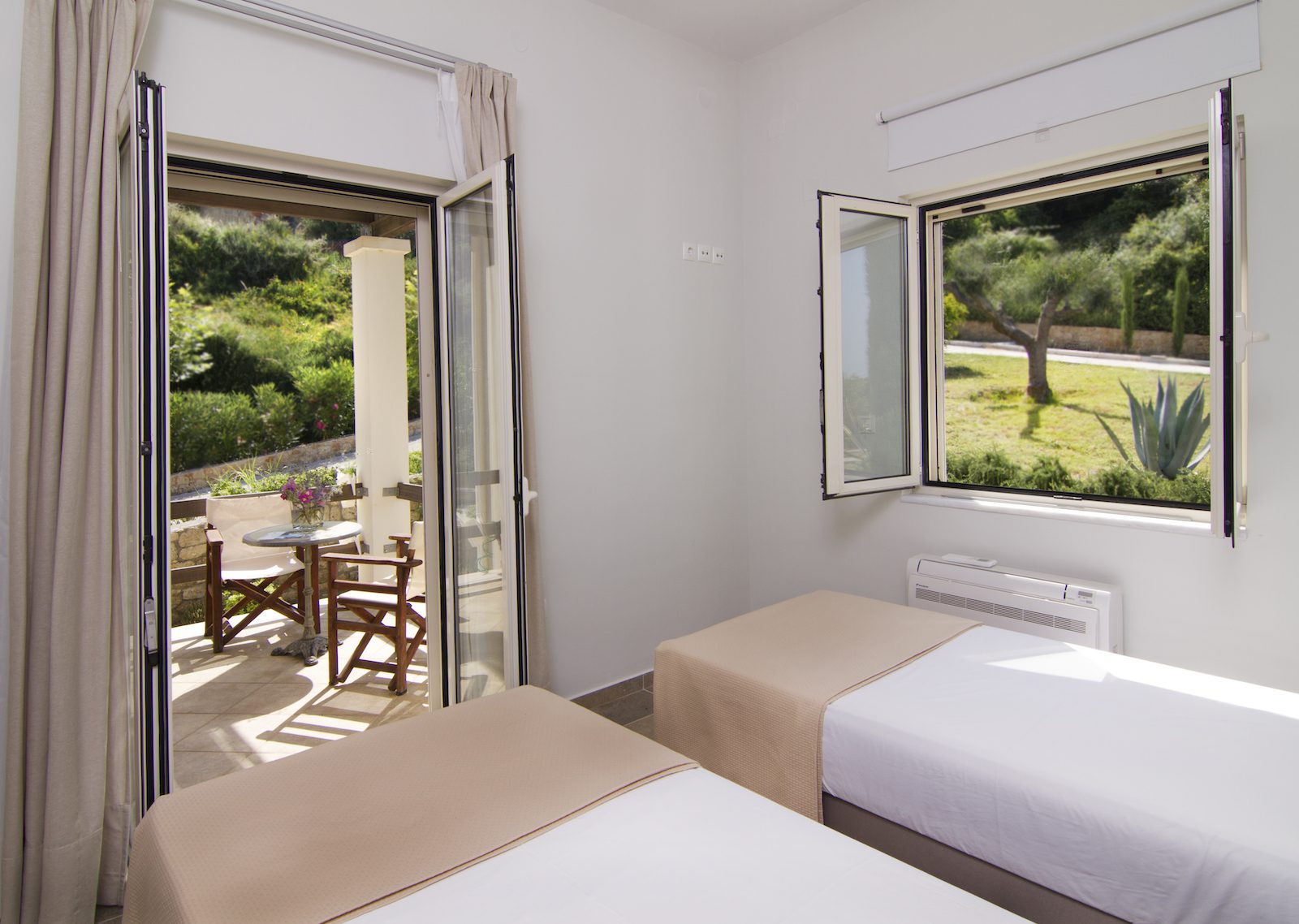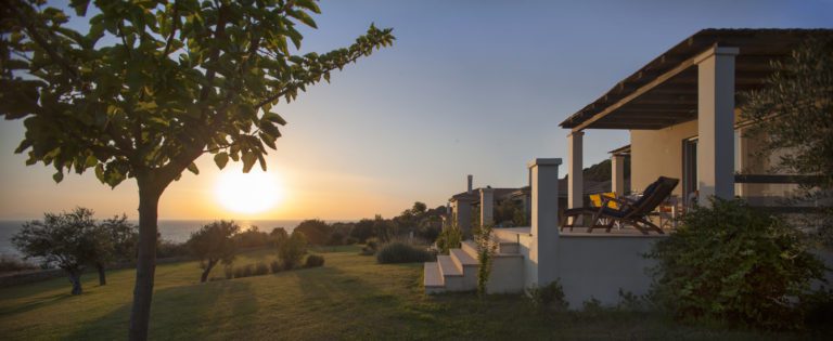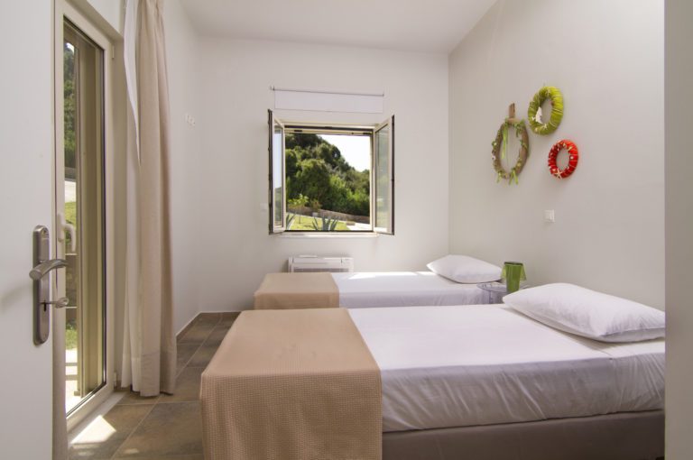A majestic view to the Ionian Sea opens up before your eyes at the Sun villa. Standing at the highest spot of the grounds, this villa will offer you relaxing moments under the soothing mediterranean sun at any time of the day, or candle-lit dinners in front of magical sunsets, while the adequate amenities in bedrooms, kitchen, bathroom and living room, will ensure the comfort of your stay.