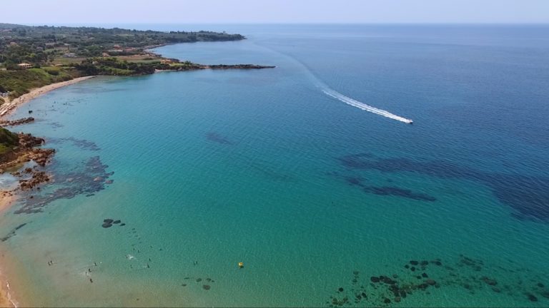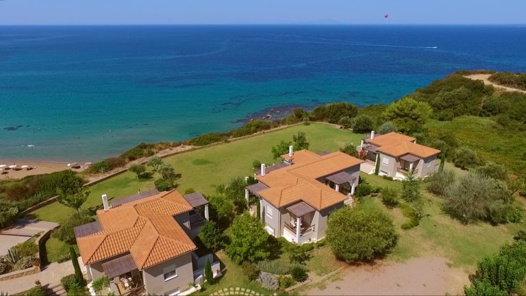 Our four independent villas are named after the elements of the landscape: Sun, Sea, Sky and Moon. Nestled into a green hillside above a golden sandy beach with crystal clear waters, they offer a panoramic view of the Ionian Sea.